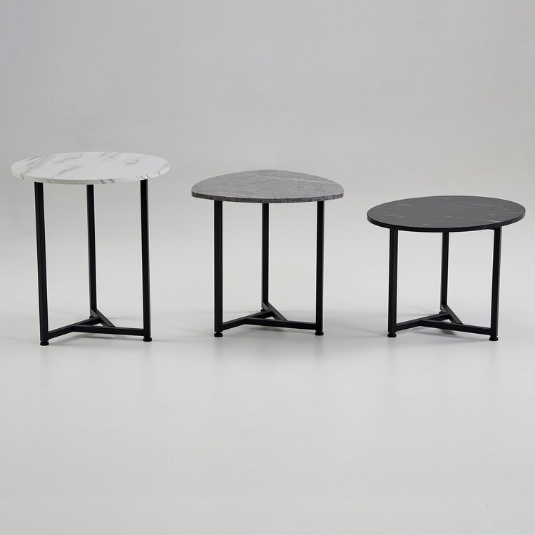 Benjara Shy Modern Side End Table Set of 3, Round, White, Gray, Black Faux Marble