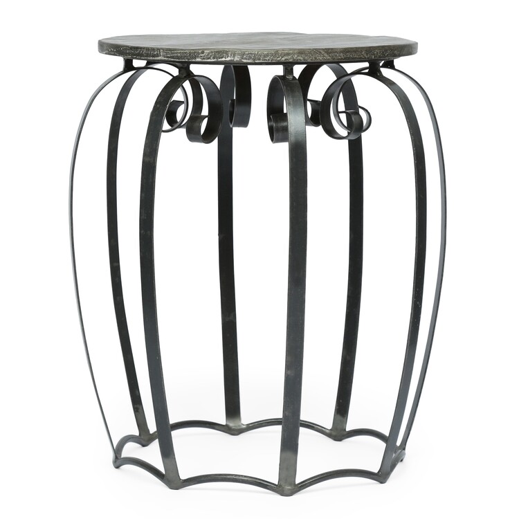 • BenJara Side End Table, Gray Iron Frame, Round Brown Mango Wood Top, 21 Inch image - 1