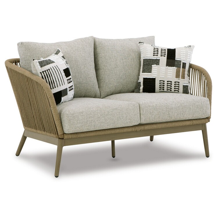• Benjara Sven 54 Inch Outdoor Loveseat, Polyester Rope, Aluminum, Cushioned, Brown image - 1