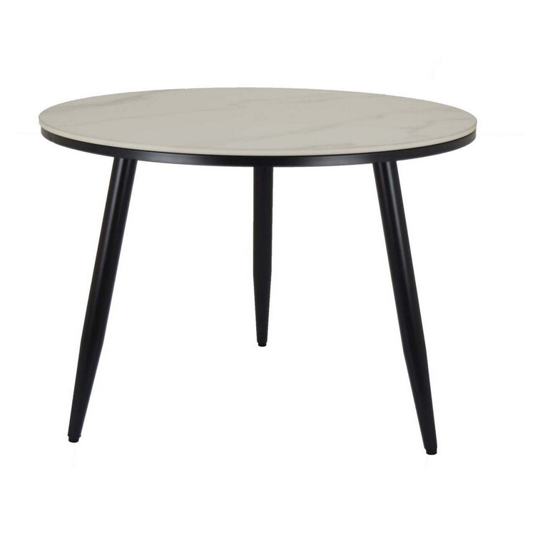 BenJara Tavi 24 Inch Plant Stand Side Table, Round White Marble Top, Black Metal