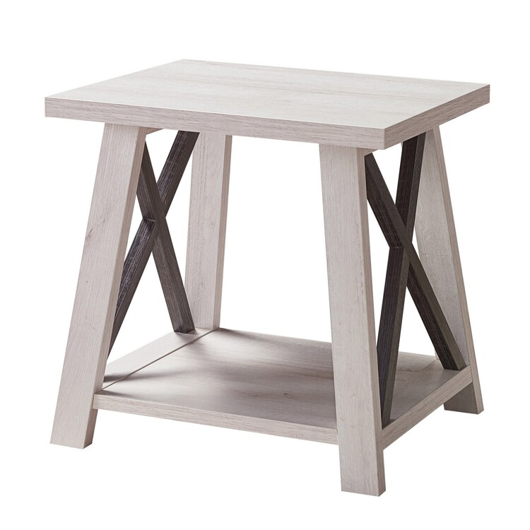 • Benjara Tess 22 Inch Farmhouse End Table, 1 Shelf, Wood, White Oak, Distressed Grey image - 1