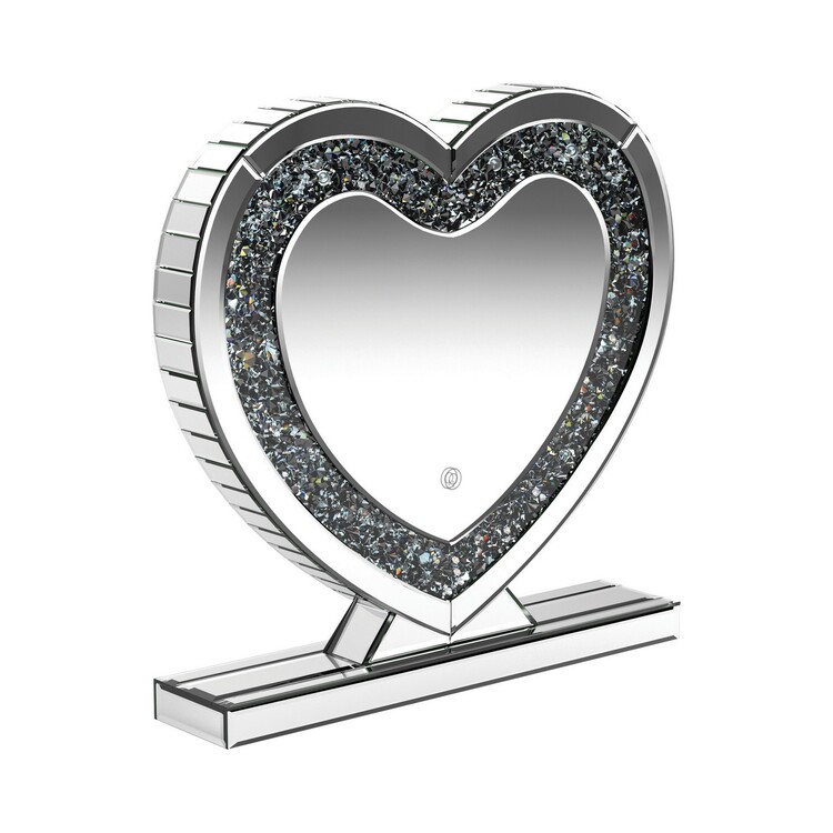 • BenJara Theo 20 Inch Modern Vanity Table Mirror, Heart, Crystal Trim, Glass, Silver image - 1