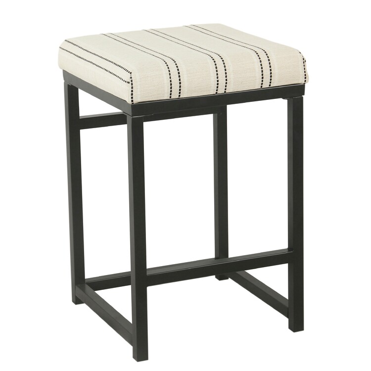 • Benjara Toko Backless Counter Stool, White Striped Polyester, Industrial Black image - 1