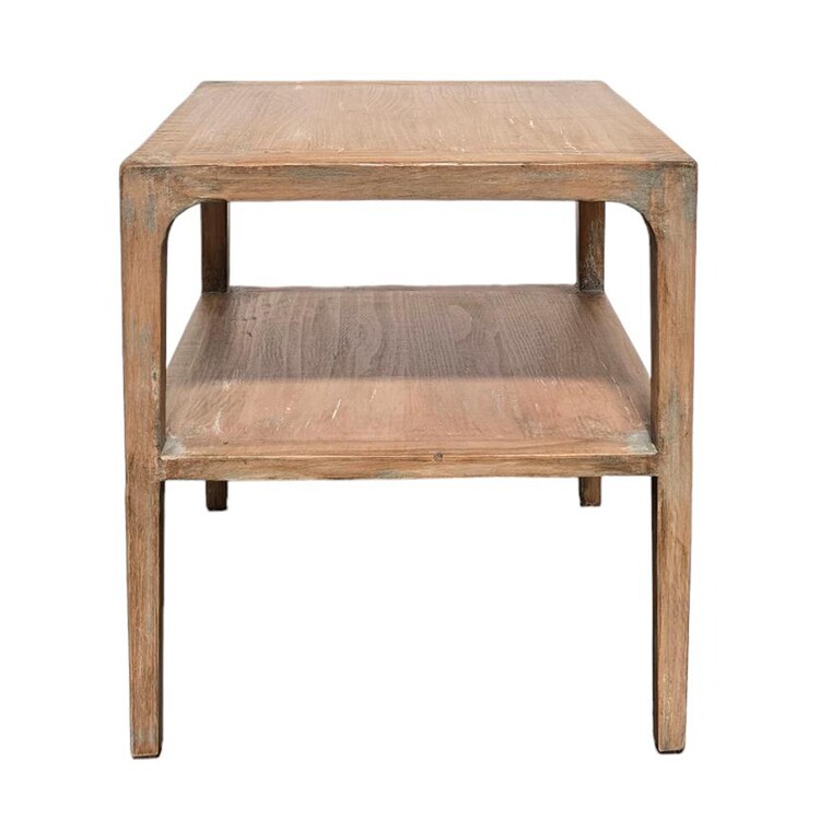 BenJara Tuley Corner End Table, Storage Shelf, Gray Pine Wood, 22in Square