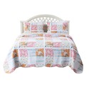• Benjara Vanie 3pc Full/Queen Quilt Set, Scalloped Edges, Blue White Pink Cotton image - 1