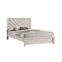 • Benjara Velz King Size Bed w Chevron Patterned Headboard, Beige Wood Finish image - 1