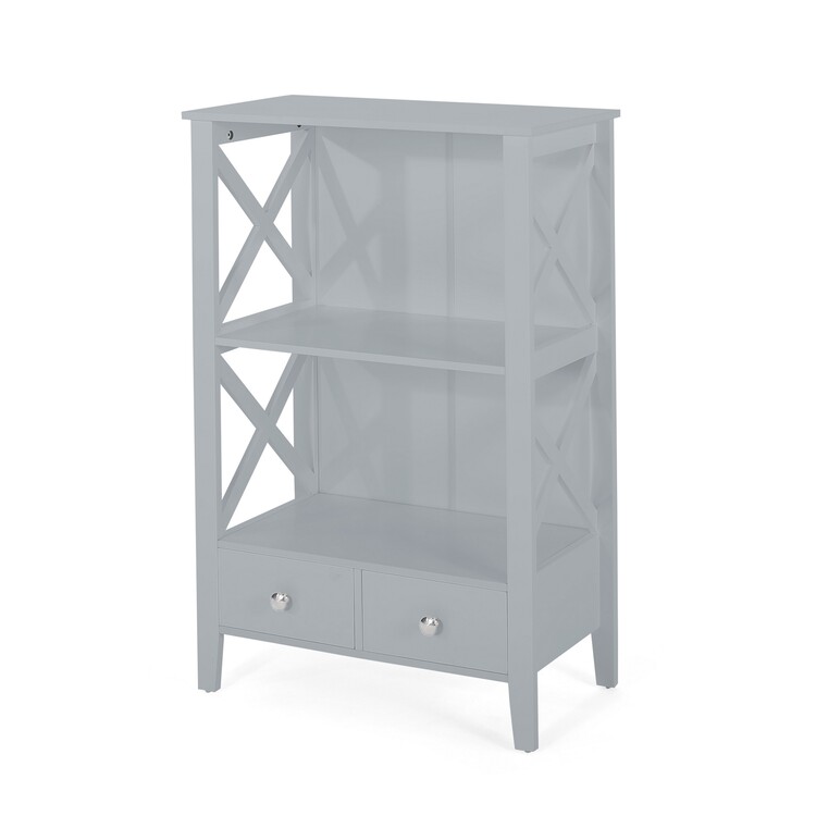 BenJara Veny Bathroom Linen Storage Rack, 24 x 36, 2 Shelves, 2 Drawers, Gray