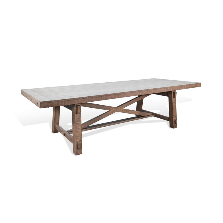 • Benjara Veny Extendable Dining Table, 108-140 Inch 8 to 14 Seater, Brown Mahogany Wood image - 1