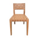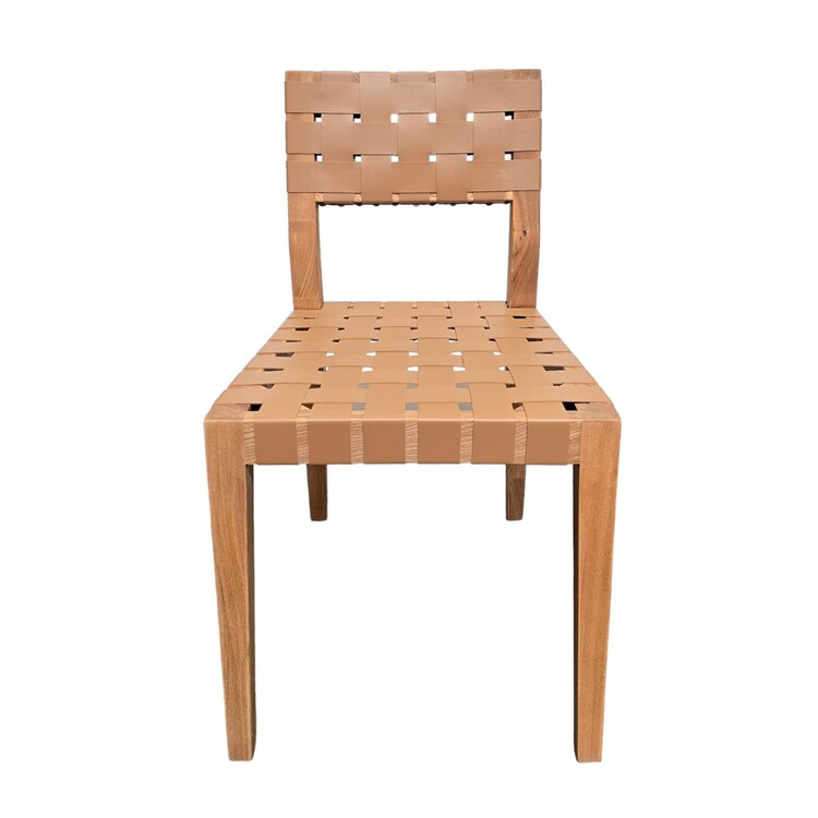 • Benjara Vimo Dining Side Chair Set of 2, Tapered Wood Legs, Brown Woven Straps image - 1