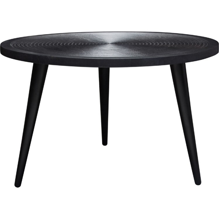 • Benjara Vio 29 Inch Round Coffee Table, Embossed Surface Patterning, Black Wood image - 1