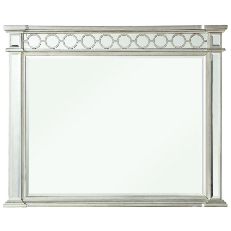 • BenJara Wooden Raised Geometric Pattern Frame Mirror with Beveled Edges, Silver image - 1