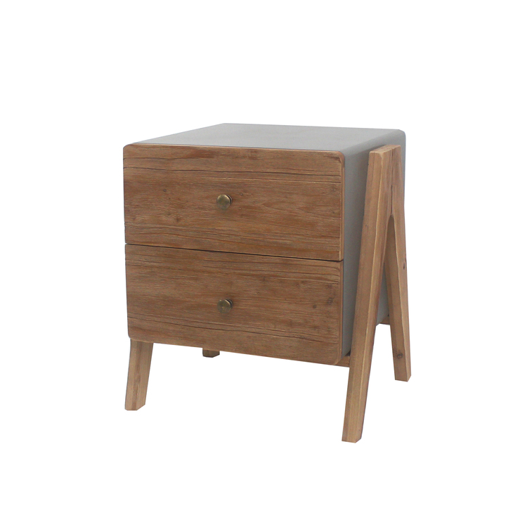 • Benjara Wooden Side Table with 2 Drawers and A Shape Legs, Brown and Gray image - 1