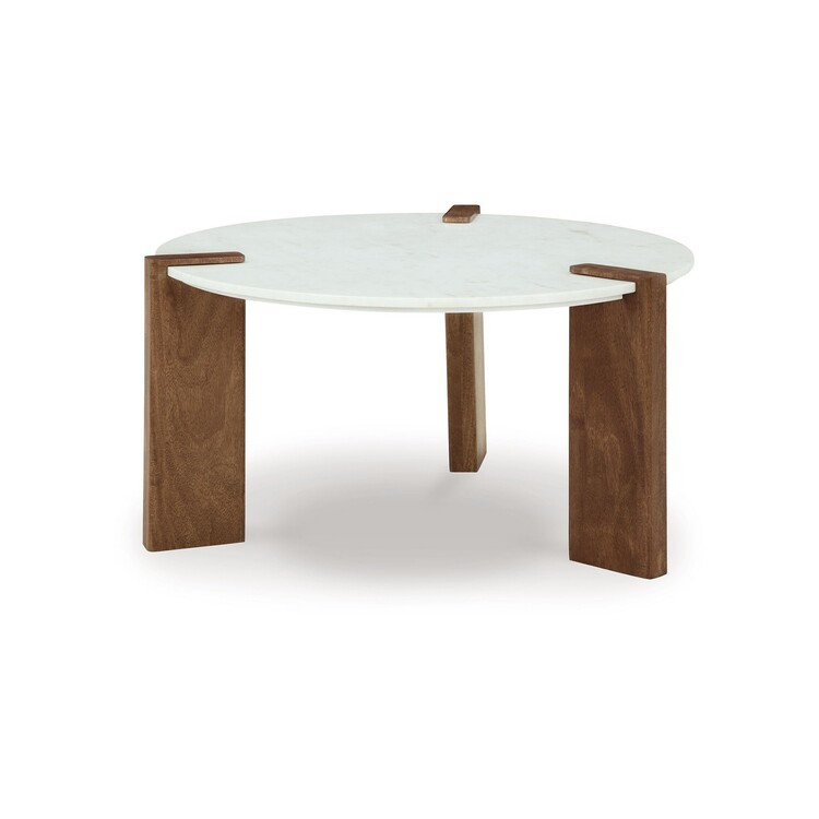 • BenJara Wrenn Cocktail Coffee Table, White Marble, 33 Inch Brown Mango Wood image - 1