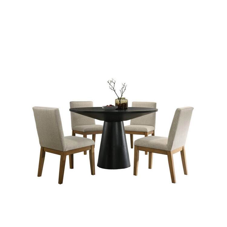 • Benjara Yuvi 5 Piece Dining Table and Chair Set, Round, Beige, Black and Brown image - 1
