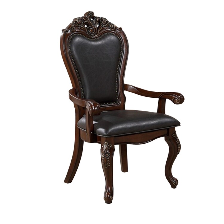 BenJara Zenie Dining Armchair Set of 2, Carved Cabriole, Faux Leather, Cherry Brown