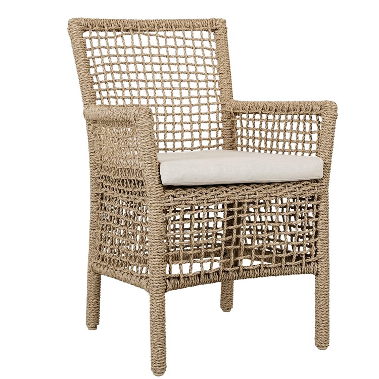 • Benjara Zev 25 Inch Outdoor Dining Chair, Hyacinth Rope Woven, Ivory Olefin Fabric image - 1