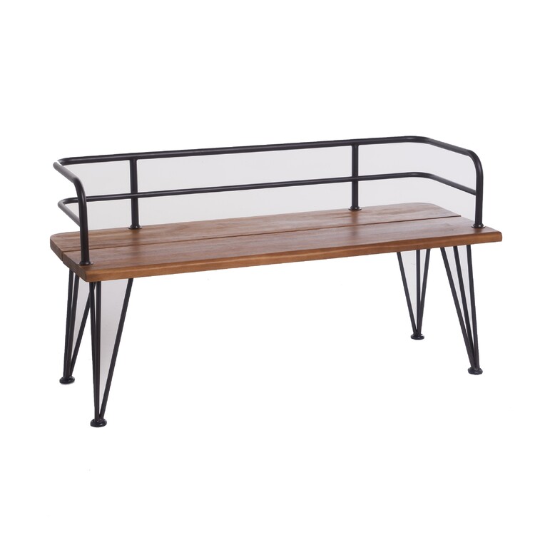 • Benjara Zoe Outdoor Bench, Industrial Metal Frame, 48 Inch Brown Acacia Wood image - 1