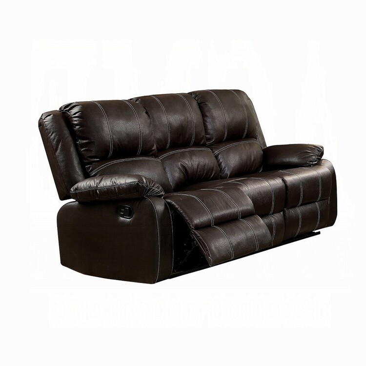 • Benjara Zuru Motion Manual Recliner Sofa, 3 Seater, Plush Brown Faux Leather image - 1