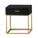 • Benjara 1 Drawer Wooden Nightstand with Metal Legs, Black and Gold image - 1