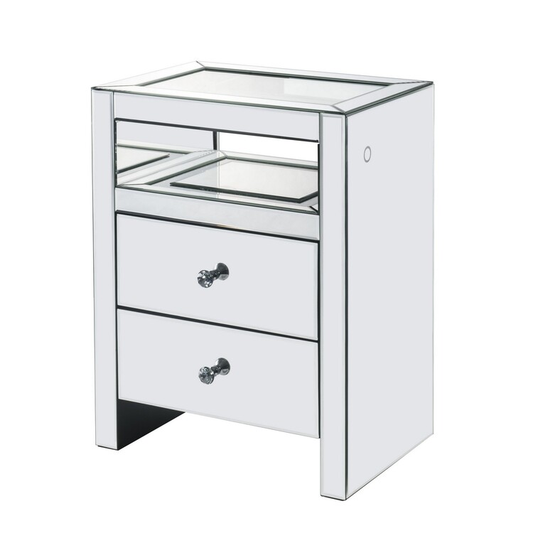 • BenJara 2 Drawer Beveled Mirrored Accent Table with Glass Top and LED, Silver image - 1