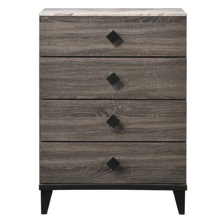 • Benjara 4 Drawer Wooden Chest with Grains and Angled Legs, Cream image - 1