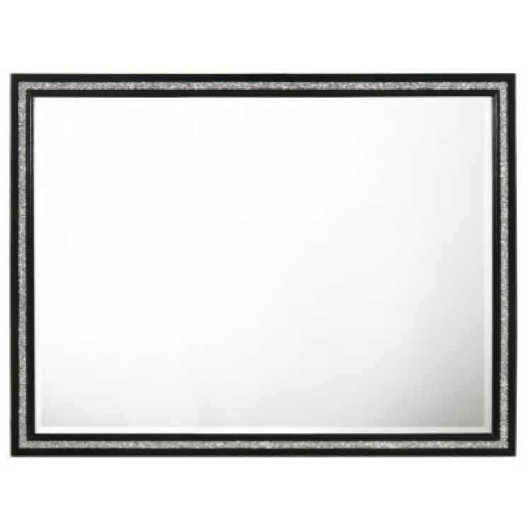 • BenJara 46 Inch Solid Wood Mirror, Shimmering Silver Accent, Landscape, Black image - 1