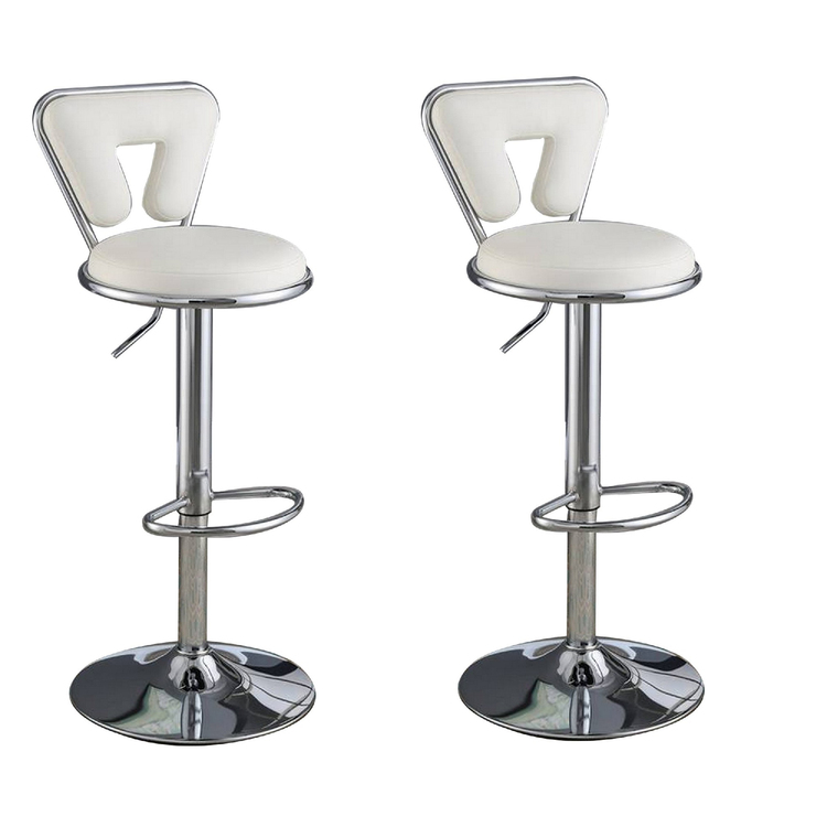 • Benjara Adjustable Barstool with Round Seat and Stalk Support, Set of 2, White image - 1