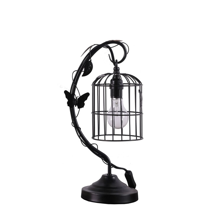 • Benjara Arc Design Metal Table Lamp with Birdcage Shade, Black image - 1
