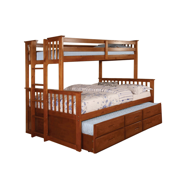 • Benjara Bunk Bed with Attached Side Ladder, Brown image - 1