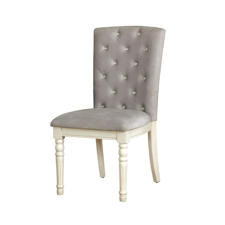 • Benzara Button Tufted Fabric Upholstered Wooden Side Chair, Pack of Two, White and Gray image - 1