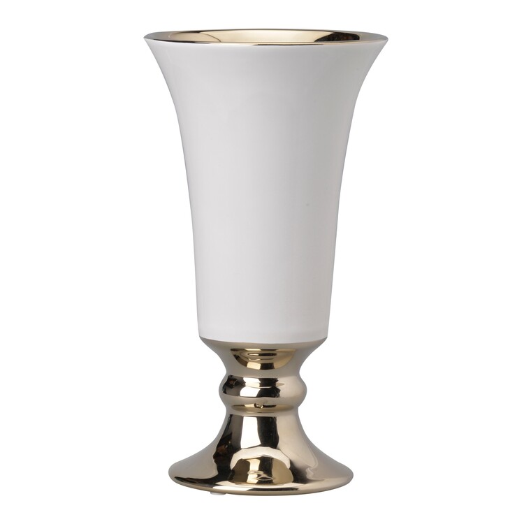 • BenJara Ceramic Vase with Flared Top and Pedestal Base, Large, White and Gold image - 1