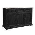 • BenJara 58 Inch Mango Wood Sideboard Buffet Console Cabinet with White Marble Top, 3 Drawers, Sandblasted Black image - 1