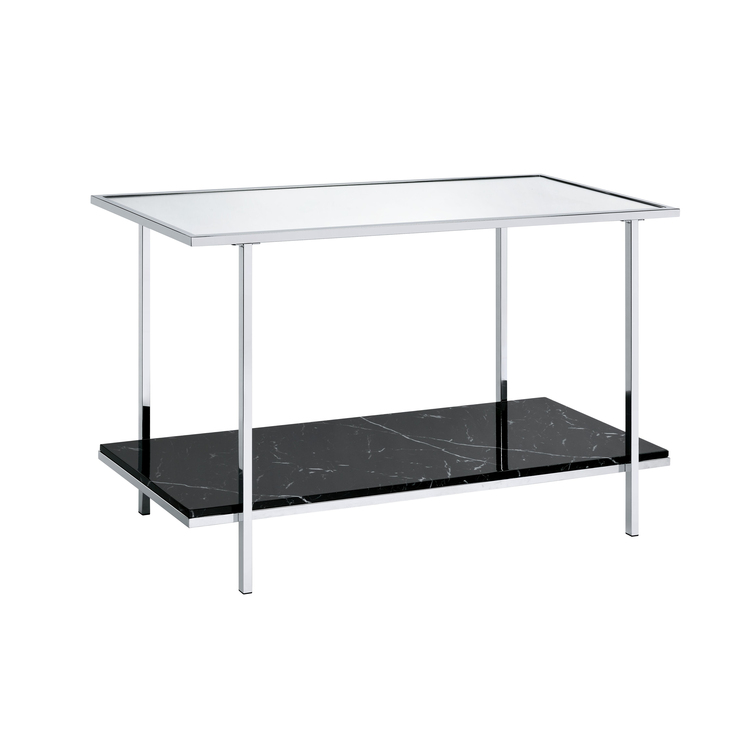 • Benjara Console Table with Mirror Top and Faux Marble Open Bottom Shelf, Silver image - 1