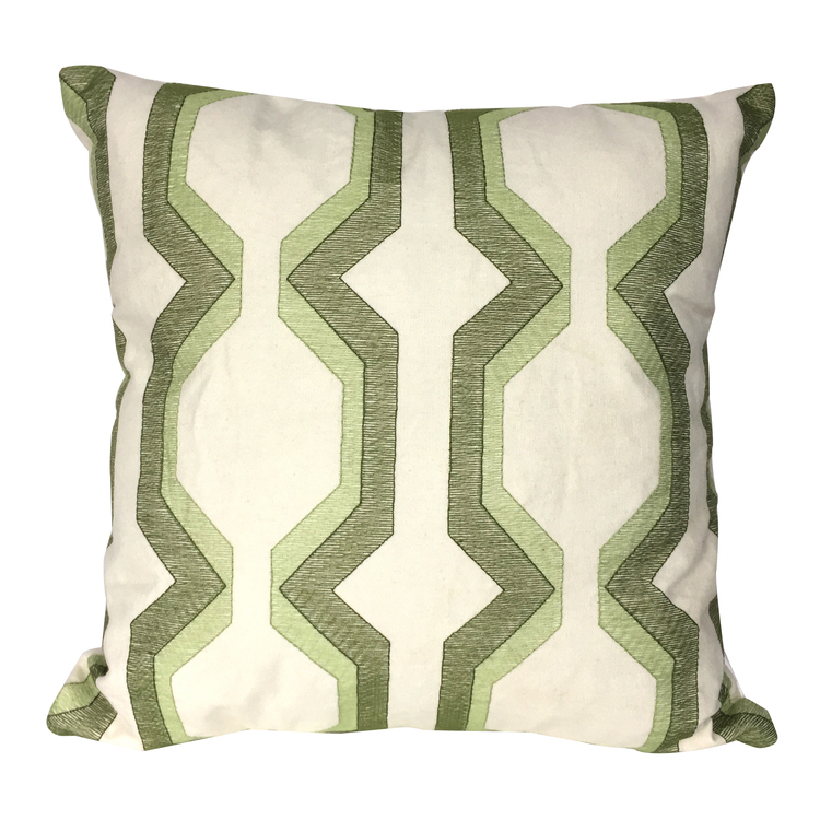 • Contemporary Green and White Cotton Pillow with Geometric Embroidery image - 1
