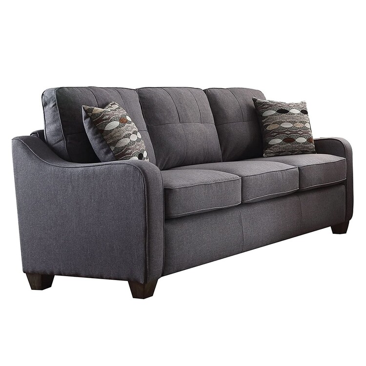 • Benzara Contemporary Linen Upholstered Wooden Sofa with Two Pillows, Gray image - 1