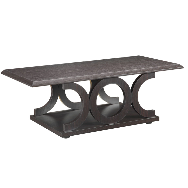 • Benzara Contemporary Style C Shaped Coffee Table With Open Shelf, Espresso Brown image - 1