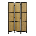 • Benjara Cottage Style 3 Panel Room Divider with Willow Weaving, Black and Brown image - 1
