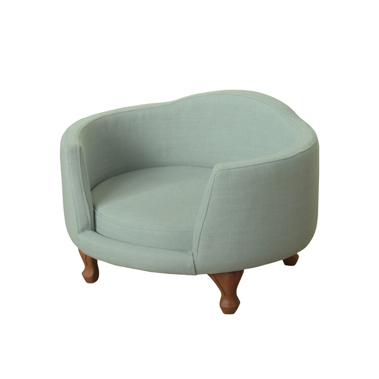 BenJara Curved Design Wooden Pet Love Seat With Fabric Upholstery, Light Blue and Brown