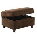 • Benjara Fabric Upholstered Rectangular Ottoman with Hidden Storage, Brown image - 1