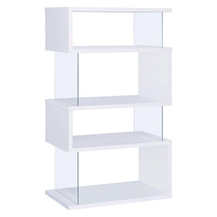 • Benjara Asymmetrical Snaking Wooden Bookcase, Black image - 1