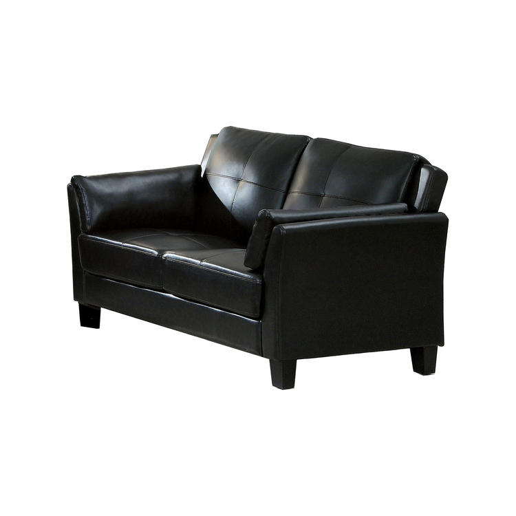 Benjara Faux Leather Upholstered Wooden Loveseat with Cushioned Armrests, Black