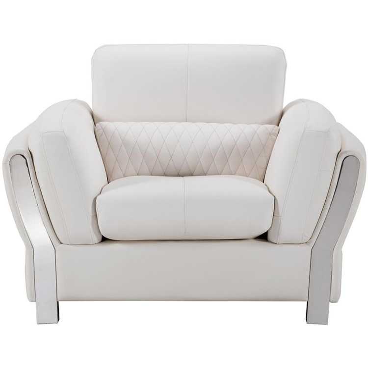 • Benjara Faux Leather Upholstered Wooden Sofa Chair with Attached Lumbar Cushion, White and Silver image - 1