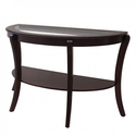 • Benzara Semi Oval Solid Wood Table with Beveled Glass Top and Open Shelve, Espresso Brown image - 1