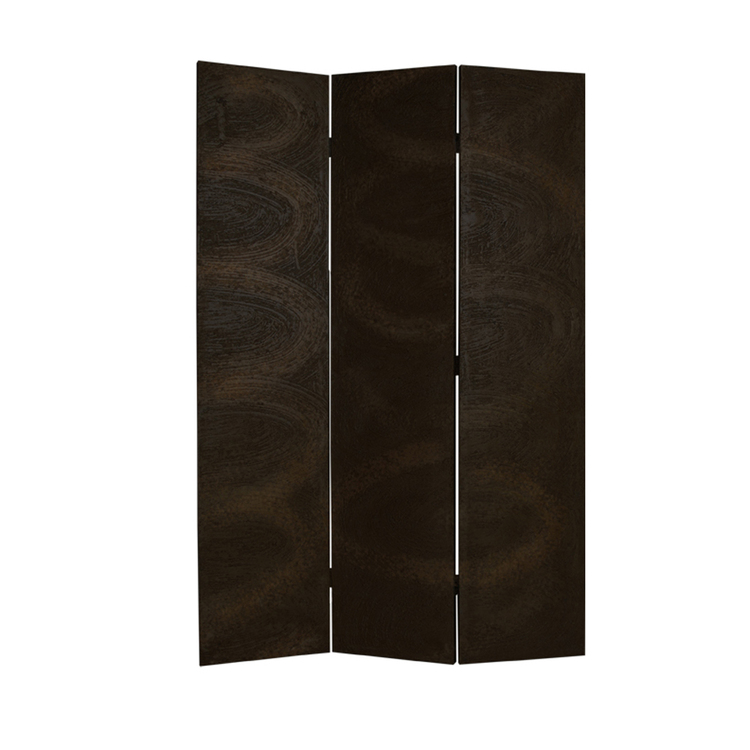 • Benjara Foldable 3 Panel Canvas Room Divider with Swirl Details, Dark Brown image - 1