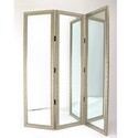 • Benjara Full Size Dressing Screen with 3 Panel Resin Engraved Frame, Gold image - 1