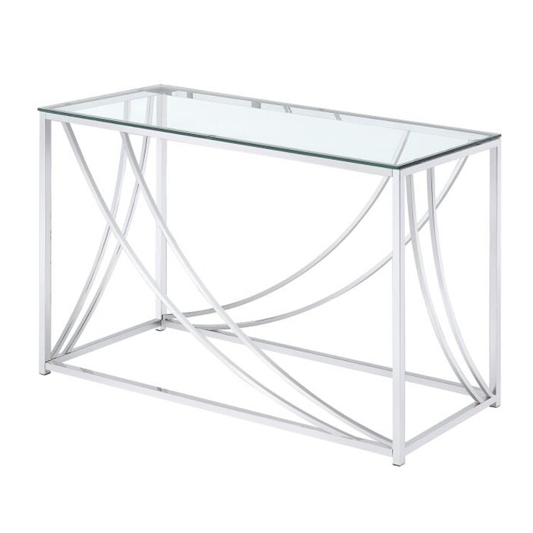 • BenJara Glass Top Rectangular Sofa Table with Swooping Curves, Clear and Silver image - 1