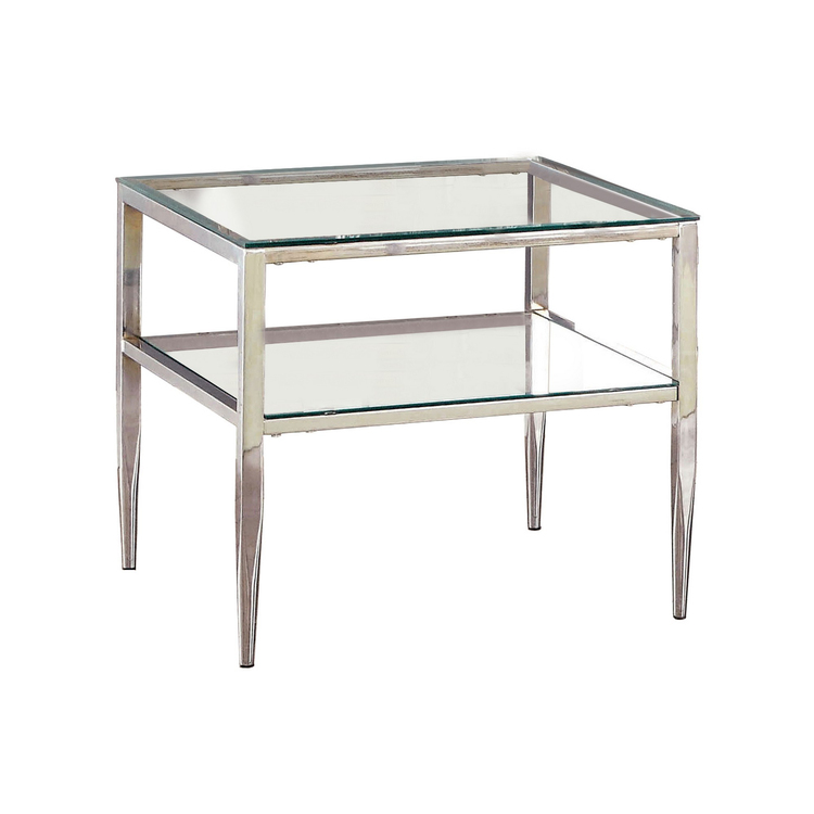 • BenJara Metal Square End Table, Glass Top, Open Shelf, Chrome image - 1