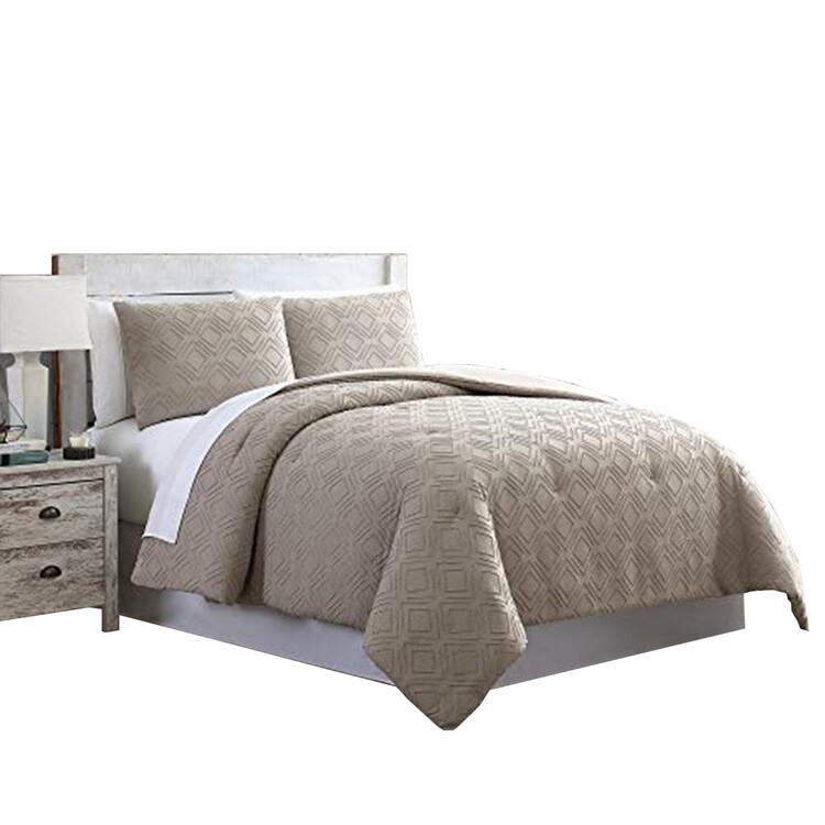 • Benjara Gothenburg 3 Piece Diamond Pattern Queen Comforter Set The Urban Port, Taupe Brown image - 1