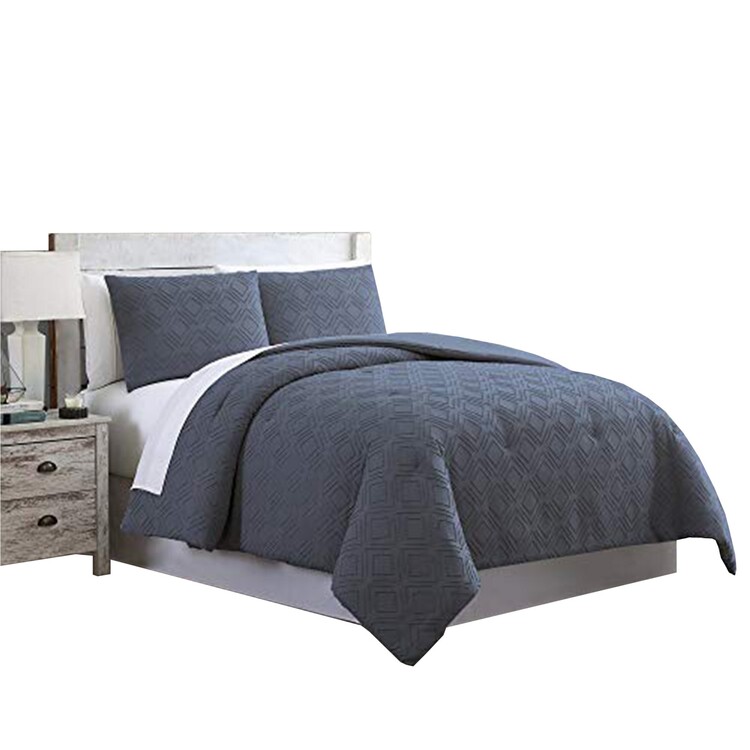 • Benjara Gothenburg 3 Piece Diamond Pattern Queen Size Comforter Set The Urban Port,Navy Blue image - 1
