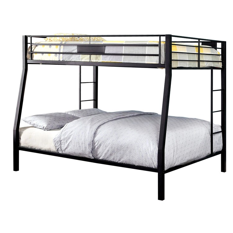 • Benzara Industrial Style Twin/Queen Metal Bunk bed, Black image - 1